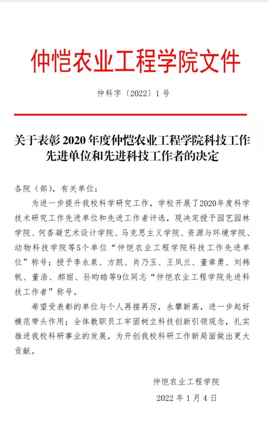 1月4号,伟德bv1946官网发布《关于表彰 2020 年度伟德bv1946官网科技工作先进单位和先进科技工作者的决定》。