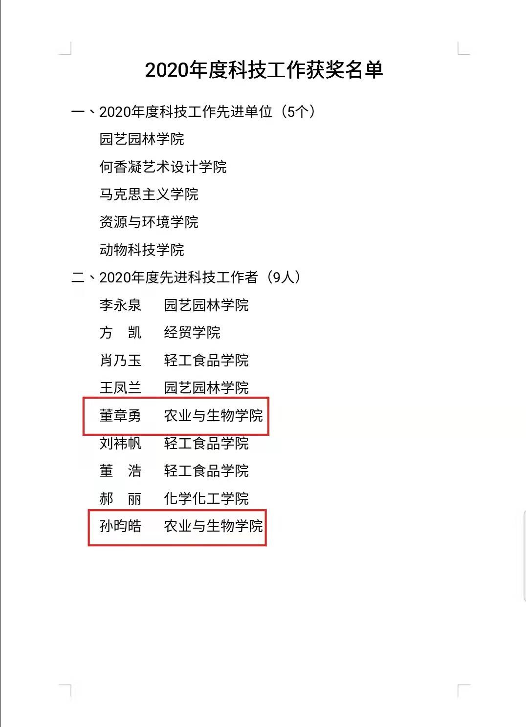 伟德bv1946官网董章勇、孙昀皓老师荣获“伟德bv1946官网先进科技工作者”称号。
