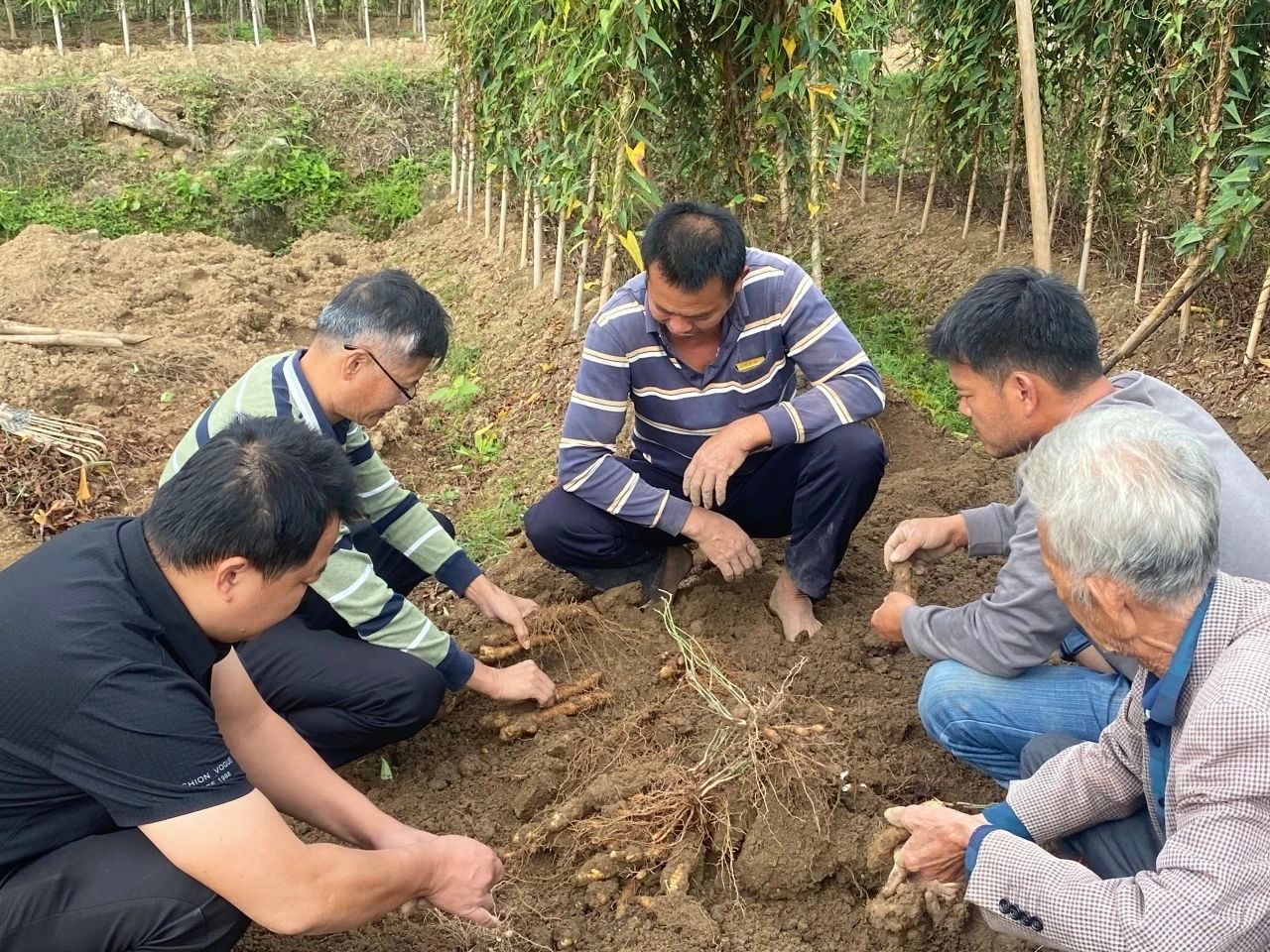 在深入调研及听取镇、村、合作社等各方汇报后,郑教授认为:在姜薯种植产地,可以打造一批亩产值达到10万元的田园。他给出了指导性意见和建议:一是统筹规划、谋划布局潮阳姜薯产业带,利用全域土地综合整治有利契机,推动新乡村与周边种植姜薯的上坑、西陇等村庄联动发展,整修农田排灌水系,修筑机耕路,建设高质量姜薯种植标准化示范区,打造成“亩产值十万元田、千亩亿元种植圈”的河溪姜薯走廊。二是合理轮作,着重示范推广“两年水稻+一年姜薯”水旱轮作方式,即变“两年一轮姜薯”为“三年一轮姜薯”,培植培优稻薯双适生境,既突出水稻主粮地位、又实现粮经作物双增产双增收;三是注重选种,通过专业研发进行提纯复壮乃至脱毒快繁,解决因品种混杂退化而导致单株产量、成薯品质和感观品相等参差不齐,造成产量不高不稳、品质品相不佳等问题;四是总结推广老薯农成功经验,融合现代化生产模式,探索以机耕起垄播种、植保飞防作业、机械化收获等先进技术或者农机托管服务,提升生产效率;五是扶持龙头企业、合作社,通过产品加工与标准化,以及挖掘姜薯习俗和文化,融合农文旅开拓新市场,走出潮阳姜薯“有金牌产品无金字产业”困境。