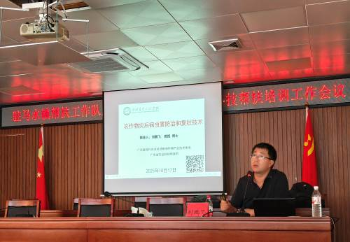 受台风“桦加沙”与“麦德姆”连续影响,阳江市阳春马水镇部分农田和果树出现倒伏及病虫害多发情况,农业生产面临严峻挑战。为助力灾后复产,提升农户灾后水稻和果树等的栽培管理和病虫害防控,伟德bv1946官网农村科技特派员宋汉达团队迅速响应,特邀仲恺农生院刘鹏飞教授与园艺与园林公司涂攀峰副教授,于2025年10月17日赴马水镇开展专项技术培训与田间实地指导,聚焦水稻与番石榴两大主导产业,为农户送去关键技术支撑。