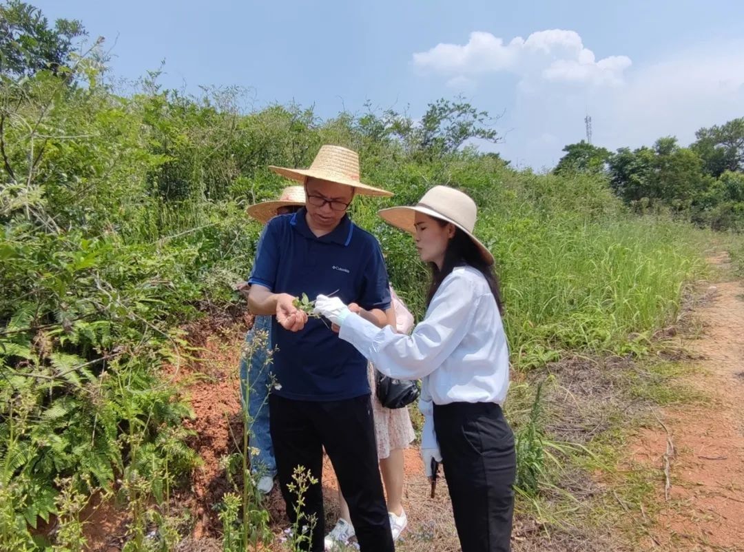 随后,特派员到广东刘猛生物科技有限公司进行调研,公司负者人介绍,目前公司现有牛大力种植近800亩,已研发出包括“金花茶”在内的十余种特色功能茶品和饮料。特派员团队采样“金花茶”样本,计划协助公司解析其产品的功能和作用,利用高校人才及科研优势,围绕技术创新,通过产学研结合,为公司产品研发替工技术支持和指导。