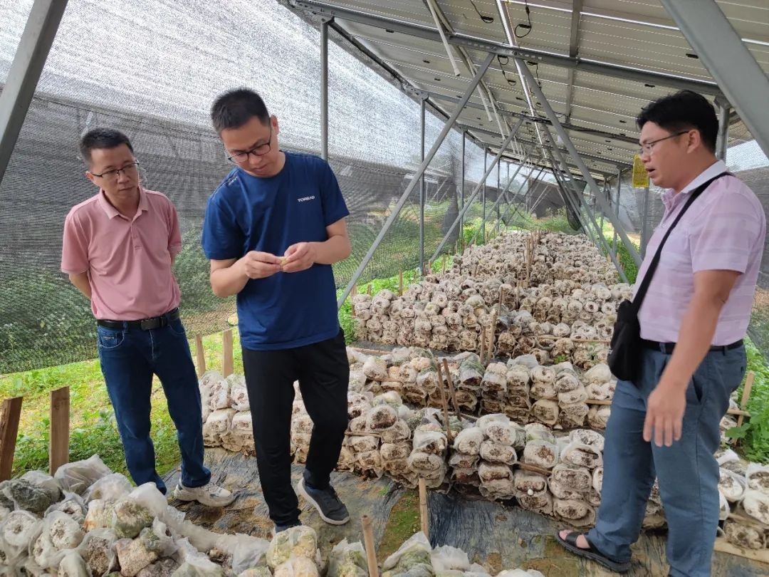 随后,特派员团队调研了船步镇船北村光伏板下食用菌种植基地,船步镇副镇长陈应运详细介绍了北村光伏食用菌种植情况以及种植过程中存在的问题。针对光伏食用种植中存在的问题,徐彪教授表示,光伏下温度较高,建议选择高温型食用菌品种,合理搭建菇架,减少高温以及雨水对蘑菇种植的影响。同时特派员团队将持续跟踪船北村光伏板下食用菌种植基地蘑菇种植中存在的问题,积极提供相应的技术支持。