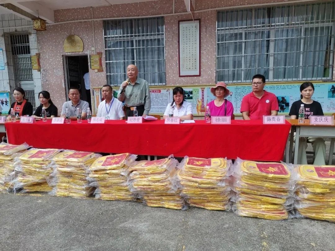 此外,特派员团队此行还参加了三排镇爱国教育慈善助学公益活动。在陈青春副部长的介绍下,驻三排镇工作队与广州市江南慈善基金会积极展开了对接,并于6月30日上午在三排镇南岗中心公司举办了安全书包捐赠仪式,三排镇党委、驻镇工作队及南岗村领导及公司师生代表600余人参与并见证了活动盛况。