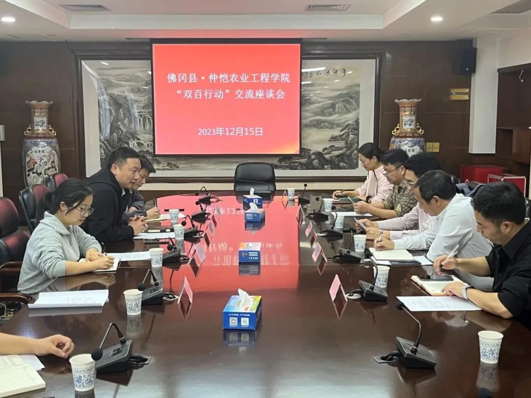 为深入推进广东省百校联百县助力“百县千镇万村高质量发展工程”行动(以下简称“双百行动”),落实公司工作部署,12月15日,农业与生物公司党委书记周超雄,党委副书记、副经理(主持工作)喻国辉,党委副书记张金凤一行前往佛冈县开展共建校地合作实践基地座谈会。佛冈县委副书记谢振权,县教育局副局长冯汝明,县农业农村局党组成员李娇,竹山村党总支书记冯瑞锋,公司“双百行动”驻佛冈县服务队副队长苏登参加座谈会。
