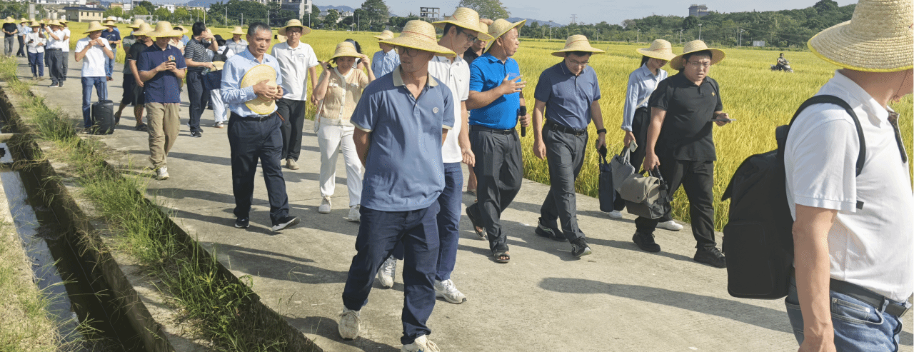 现场观摩交流环节,公司知名老专家、省“揭榜挂帅”项目骨干成员、省花生大豆产业技术体系首席专家、揭阳市现代种子产业创新服务中心兼职首席专家郑奕雄教授介绍了粮油示范基地合作共建情况;省农科院水稻研究所王重荣研究员逐一介绍了展示示范的水稻新品种,普宁市立坤农业专业合作社社长梁立坤介绍了合作社农机托管业务及示范基地配套的水稻全程机械化生产技术。
