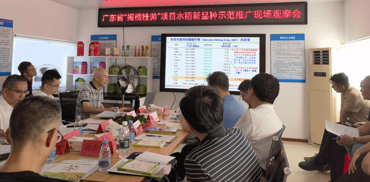 会议还就省“揭榜挂帅”项目推进工作进行深入交流和研讨。与会代表踊跃发言,就推进加深项目创新性攻关合作研究,育成的水稻新品种、花生新品种和大豆新品种等品种成果在全省各地的布点展示示范,以及院士领衔、首席专家领衔等专家团队下乡指导模式等进行热烈讨论,力求推进更多的科技成果转化落地,助力广东省“百千万工程”的建设。