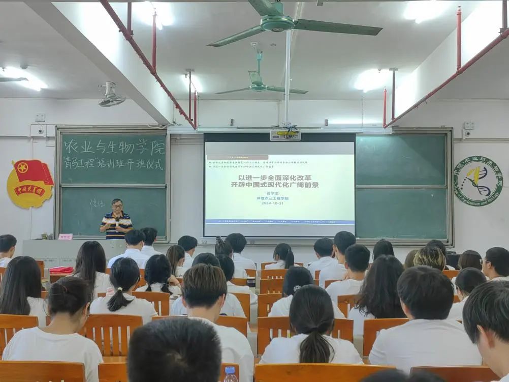 随后,“青马工程”培训班第一课开讲,由曾学龙以“进一步全面深化改革,开辟中国式现代化广阔前景”为主题进行授课。曾学龙结合具体事例,从“党的二十届三中全会精神回顾”“进一步全面深化改革的意义”“进一步全面深化改革的逻辑进路”“老员工如何学习理解《决定》”等四个方面展开讲解,环环相扣、深入浅出。他提出,老员工作为新时代青年,要深入学习贯彻党的二十届三中全会精神,明确在推进中国式现代化进程的使命和责任,在推进中国式现代化进程的过程中实现自己的理想抱负。