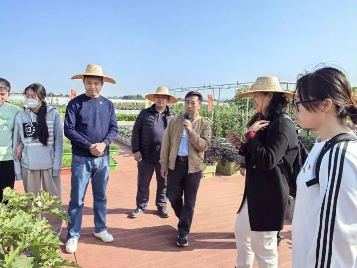 公司副总经理李庆怀以及人力资源部主任陈文捷带领同学们参观基地,李总详细向同学们介绍了基地示范大田种植的各种作物、主题型叶菜类展示区以及植物工厂示范基地智能化工程等项目,使同学们领略到了现代化农业的魅力。李总还表示,公司希望能通过集成展示新品种、新技术、新场景,加快推进“百千万工程”,深入实施种业振兴行动,助力打造广东农业全产业科技成果推广大平台,全面展示种业振兴成效。