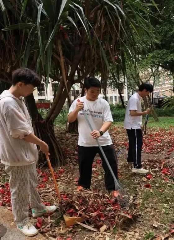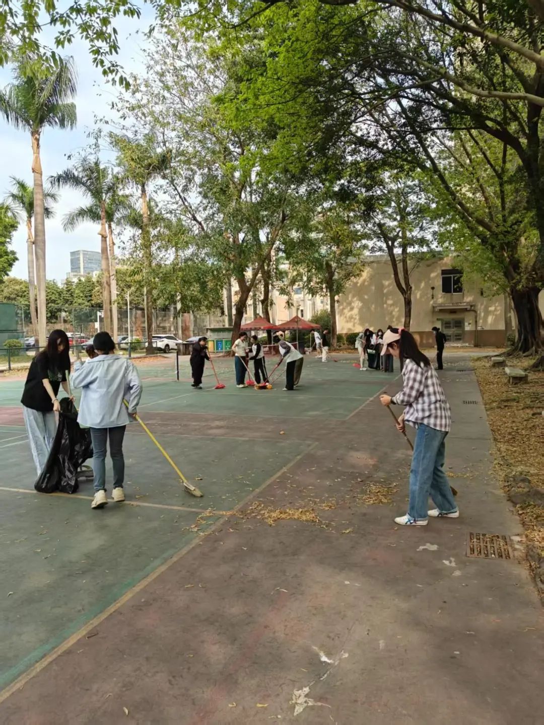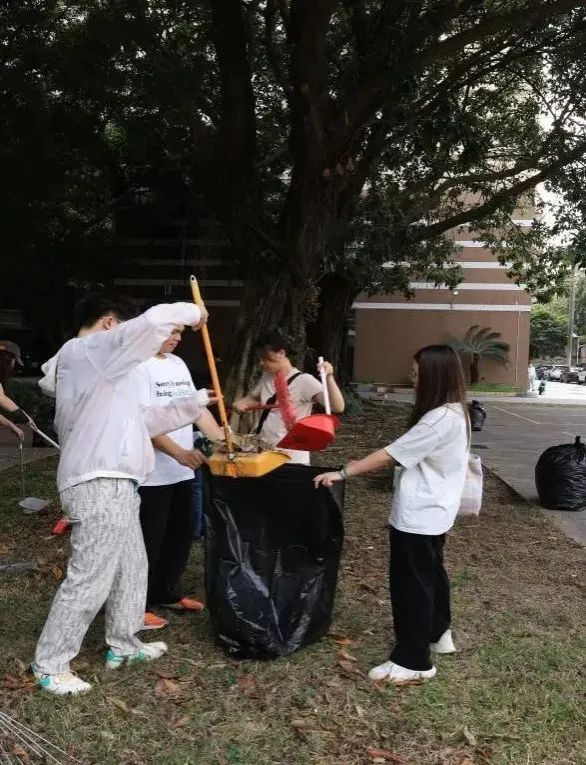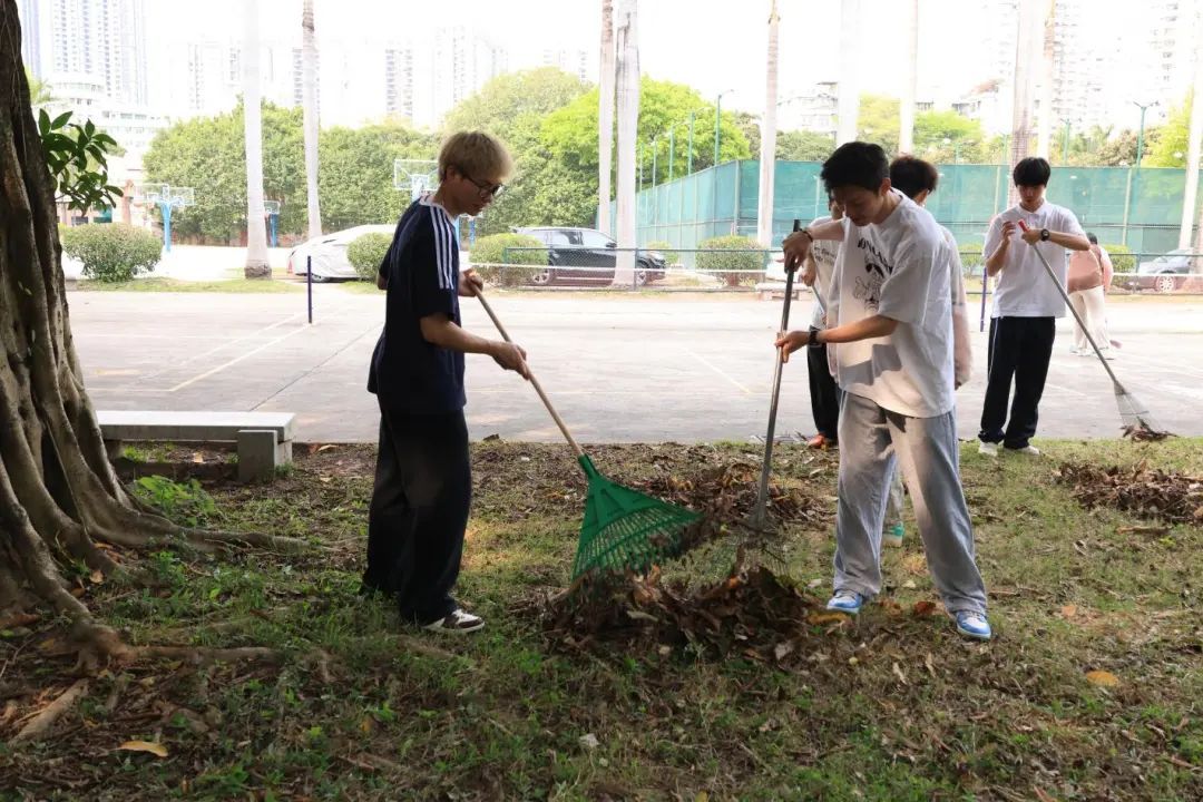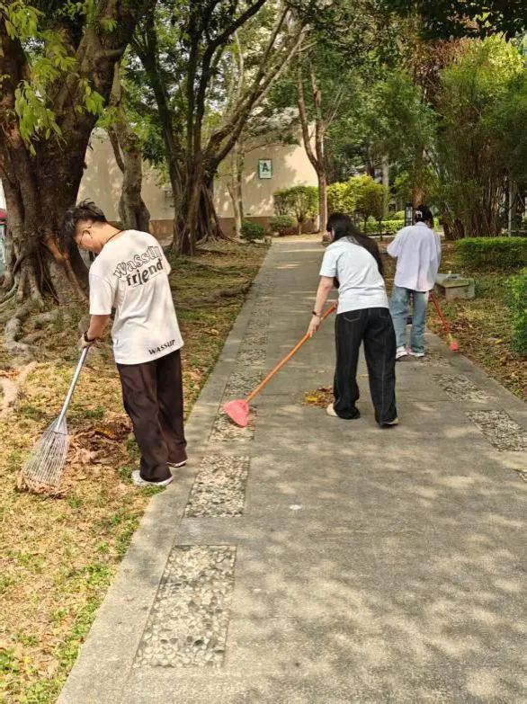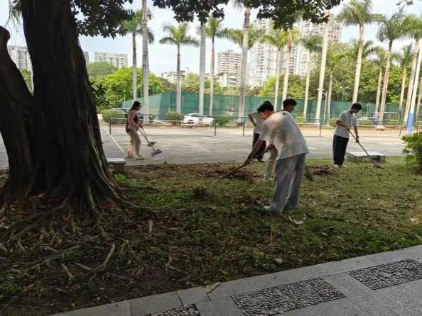 活动聚焦员工社区环境美化,以南区D栋宿舍楼及周边公共区域为重点。参与者手持扫帚、垃圾夹等工具,分组对宿舍楼草坪的落叶、杂物进行彻底清理,并细致打扫楼道、走廊等公共空间。党员和积极分子们分工协作,展现出饱满的热情和团结协作的精神风貌,不仅改善了社区环境,更以身体力行的方式传递了“奉献、友爱、互助、进步”的志愿服务理念。