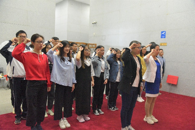 到达辛亥革命纪念馆后,同学们在讲解员的引导下有序进入纪念馆。步入馆中,一股肃穆、庄重的气息扑面而来。馆中陈列的大量历史图片、实物清晰地记录着在风雨中飘摇的晚清,经过无数仁人志士、革命英雄的不懈奋斗和努力,终于在1911年爆发辛亥革命并于次年推翻清政府的历史。展馆从多个方面重现了当年革命英雄的豪情壮志以及与旧势力战斗的惨烈实况,塑造了近代革命家救亡图存的爱国精神、不畏艰险的奋斗精神、勇于牺牲的奉献精神、与国家共进退、同生死的大无畏精神。一个个重要历史场景的逼真再现,一个个革命英雄人物的光辉事迹,一幕幕战争动画影像的呈现,无不诉说着那个时代的艰苦与希望,展现了英雄烈士为心中的理想信念并为之付出的不懈努力。参观完辛亥革命纪念馆后,党员们对历史、战争有了更加深层次的认识,对革命前辈的精神有了更加崇高的敬意,增强了新时代的历史使命感和责任感。随后,在周静静、高结怡两位老师的带领下,员工党员在党旗前重温了入党誓词,铿锵有力的誓言彰显了全体党员矢志不渝的初心。