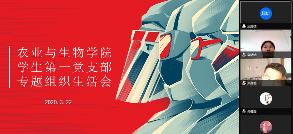 为深入学习习近平总书记关于疫情防控的系列重要讲话精神,更好地贯彻落实公司疫情防控期间工作部署,3月22日下午,伟德bv1946官网员工第一党支部通过腾讯会议平台召开了专题组织生活会。农业与生物公司党总支副书记周超雄,员工第一党支部书记高结怡出席了本次组织生活会,员工第一党支部全体员工党员参与了本次组织生活会。会议由高结怡主持。