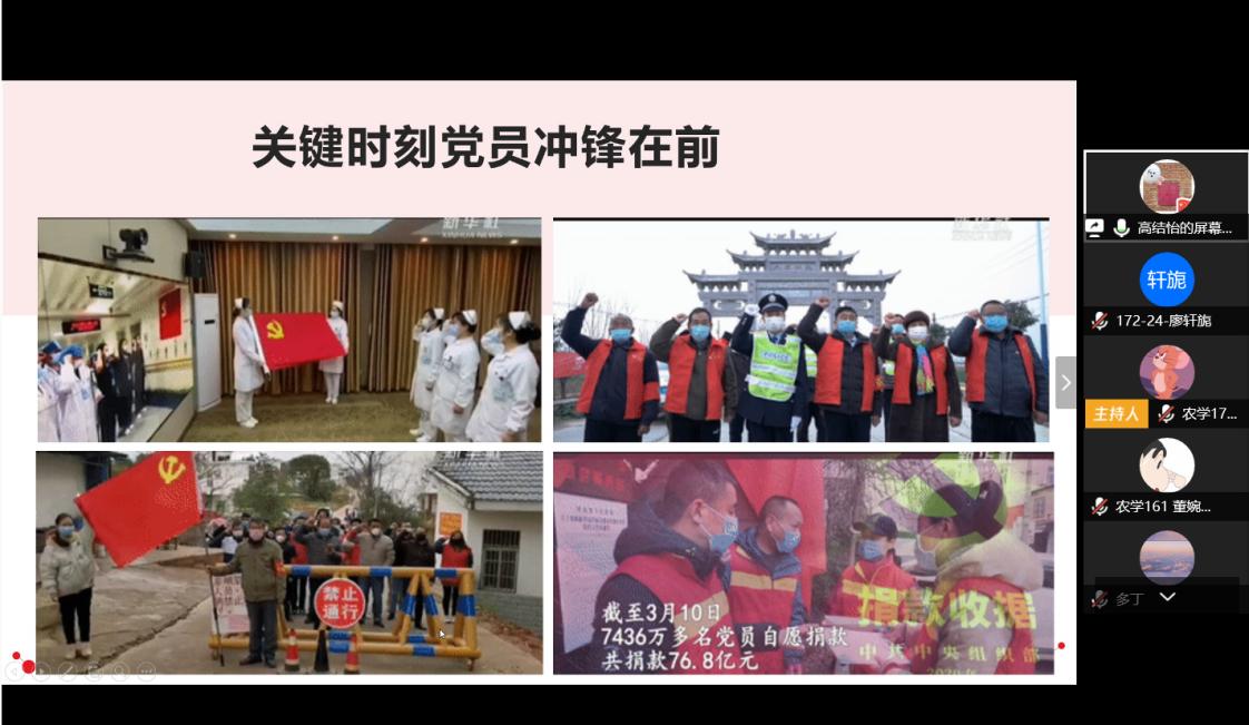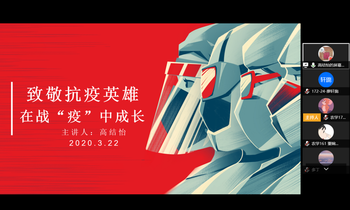 为深入贯彻落实习近平总书记关于新冠肺炎疫情防控工作的重要讲话和重要指示精神,增强党员的责任心与使命感,3月22日下午,伟德bv1946官网员工第一党支部通过腾讯会议平台举行了“致敬抗疫英雄,在战‘疫’中成长”专题党课,本次党课由伟德bv1946官网员工第一党支部书记高结怡主讲,员工第一党支部全体员工党员参加了本次党课。