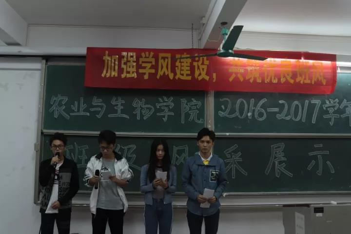 良好的班风有利与构建和谐的同学关系,增强班级成员的归属感。为了加强班风建设,共筑优良学风,11月5日,公司在杨钊杨勋楼209教室举行伟德bv1946官网2016-2017学年班级风采展示。出席本次活动的有公司党总支副书记周超雄以及辅导员高结怡老师,参加展示的共有9个班集体。