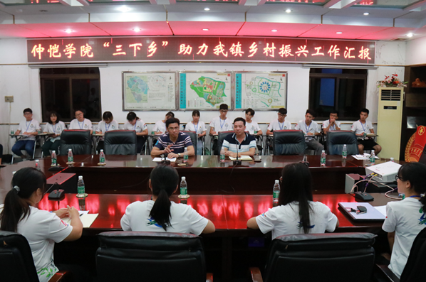 7月18日晚,仲系农情小分队在阜沙镇政府进行了“三下乡”助力阜沙镇乡村振兴工作汇报。阜沙镇党委副书记梁灶带、乡村振兴办主任郭少康出席了会议,仲系农情小分队全体成员参加了汇报会。