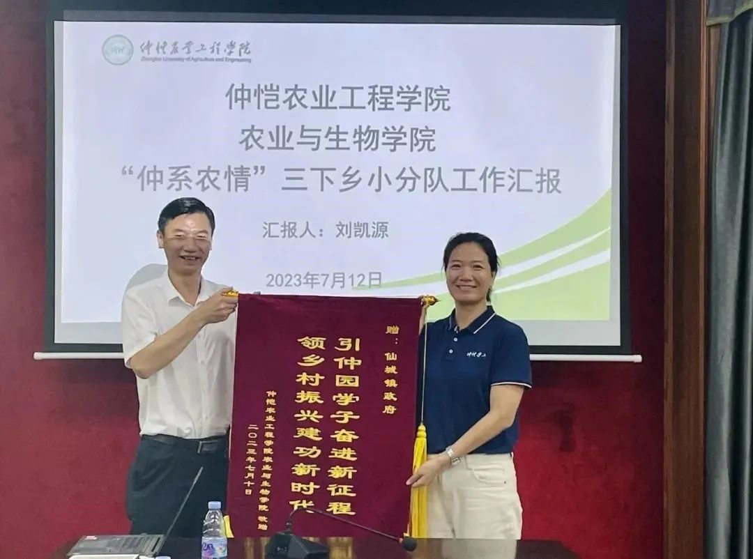 最后,张金凤代表公司赠送仙城镇政府锦旗以感谢当地政府及全体领导干部对于公司“三下乡”队伍开展社会实践活动的关心与支持。至此,仲系农情小分队三下乡实践活动圆满结束。