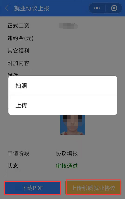 与签约单位签订就业协议后,毕业生应及时上传签订后的图片,系统将自动在此图片上加盖公司电子印章。