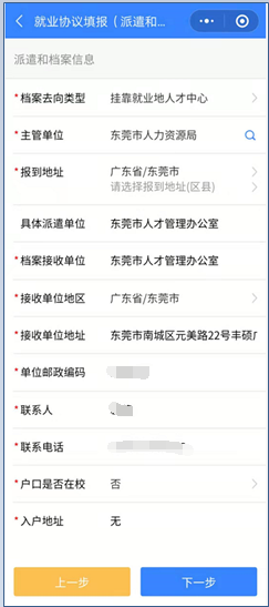 注:此步骤填写内容仅用于公司审核协议书申请的依据之一,派遣信息及档案信息还可在毕业前进行最终确认及修改!!
