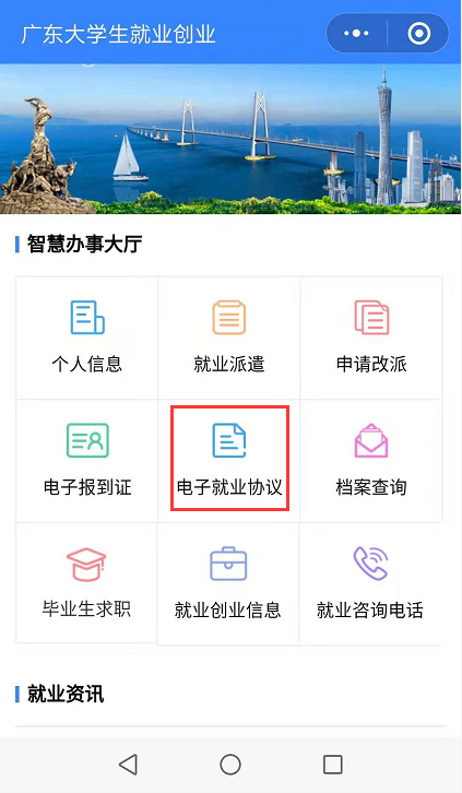 即日起,2020年毕业生与用人单位双向选择,确定聘录用关系的,可通过“广东老员工就业创业”微信小程序申请《普通高等公司毕业生、毕业研究生就业协议书》(以下简称“电子协议书”)。