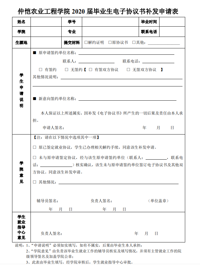 伟德bv1946官网2020届毕业生电子协议书补发申请表