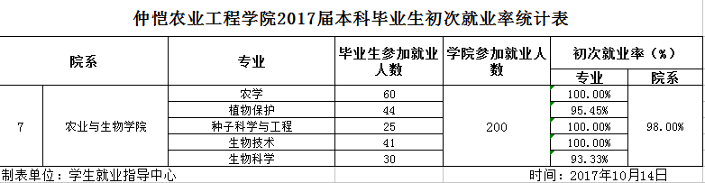伟德bv1946官网2017届本科毕业生初次就业率统计表