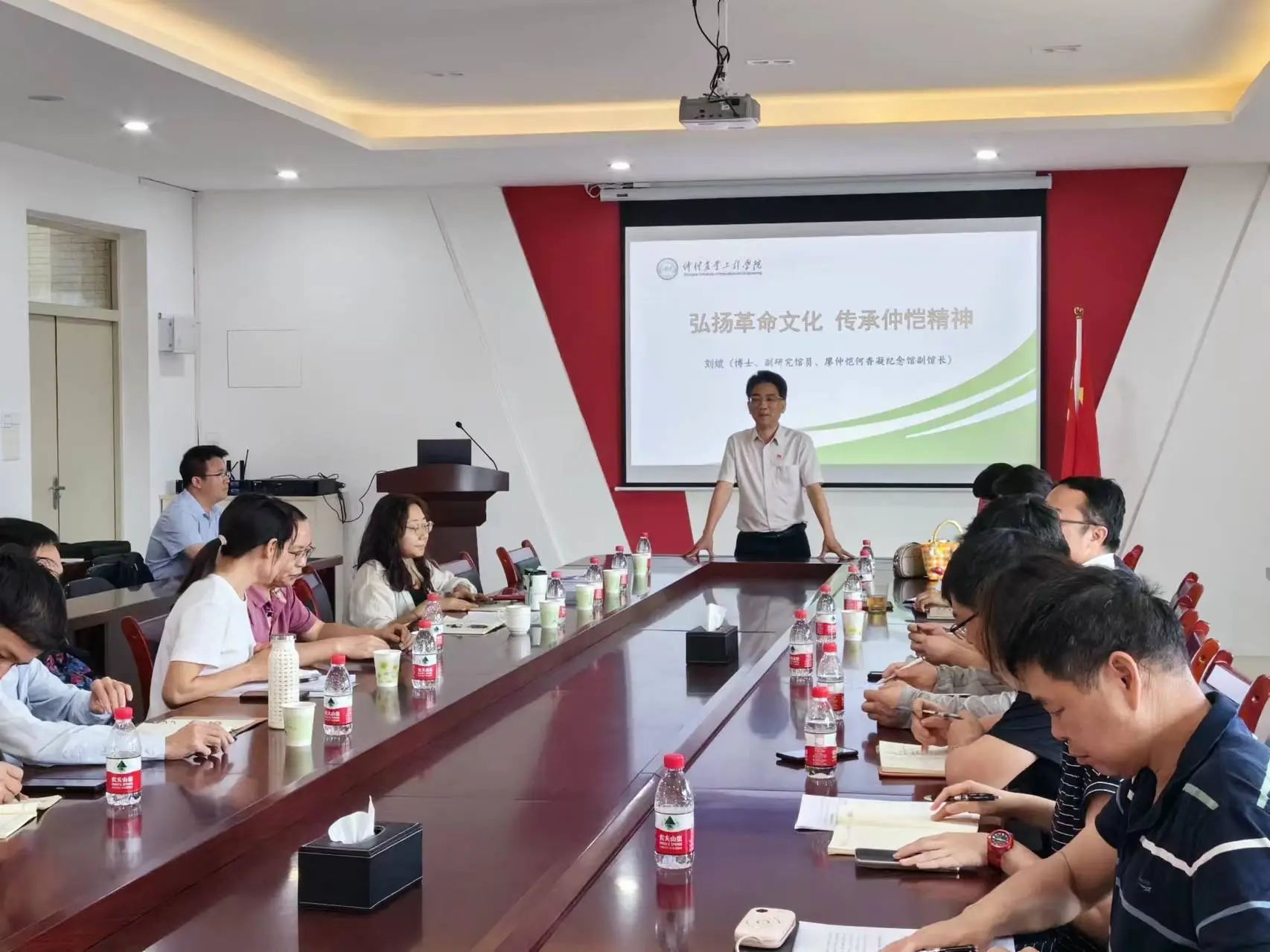 会上,刘斌从习近平总书记有关弘扬革命文化的讲话精神、从校史看公司的红色基因以及传承仲恺精神等三个方面深刻阐述了“仲恺精神”的概念,以“救国拯民,扶助农工;不畏牺牲,苦斗不屈;忠贞坦荡,克己奉公;勉学力行,进取担当。”总结了“廖仲恺精神品质”的主要内涵。他指出学习和弘扬仲恺精神,对广大的师生乃至每一个青年都具有重大意义。