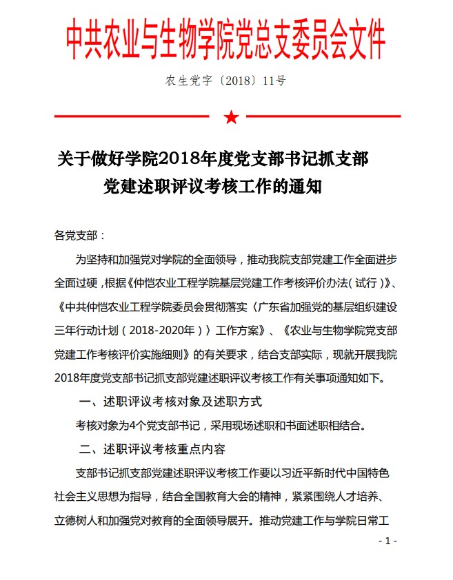 农生党字〔2018〕11号-关于做好农生院2018年度党支部书记抓支部党建述职评议考核工作的通知