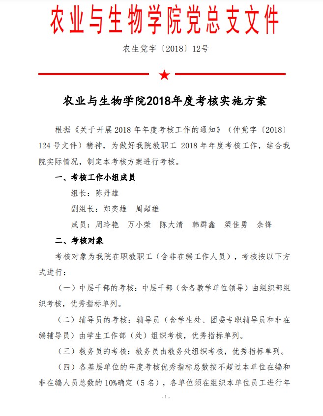 农生党字〔2018〕12号-伟德bv1946官网2018年度考核实施方案