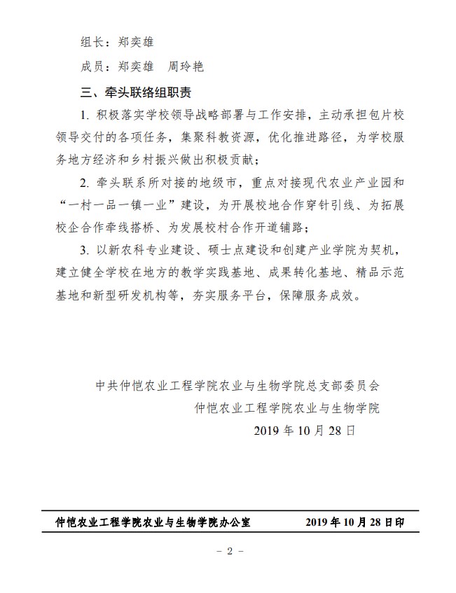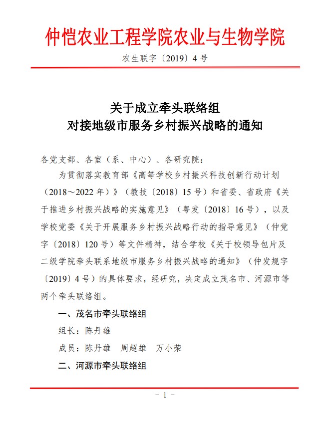 农生联字〔2019〕4号-关于伟德bv1946官网设牵头联络组服务乡村振兴战略的通知