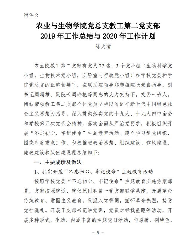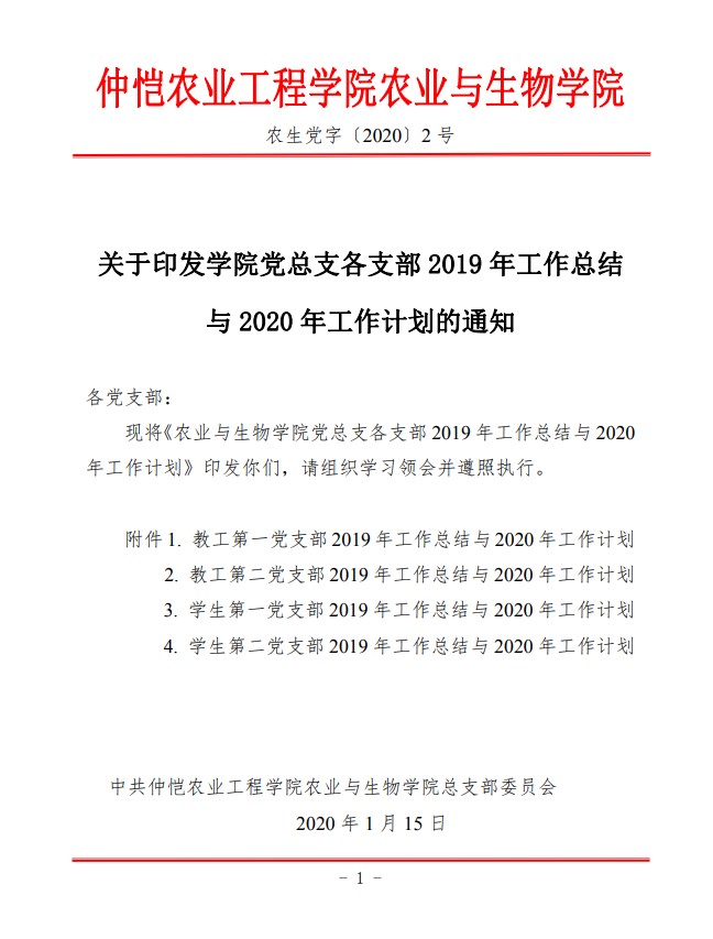 农生党字〔2020〕2号-伟德bv1946官网2019年各支部工作总结与2020年各支部工作计划
