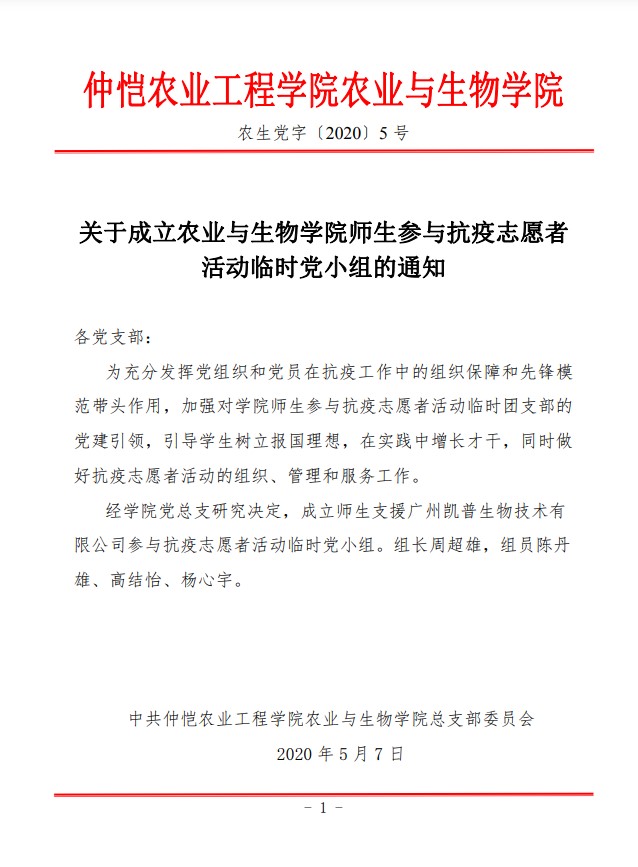 农生党字〔2020〕5 号-关于成立伟德bv1946官网师生参与抗疫志愿者活动临时党小组的通知
