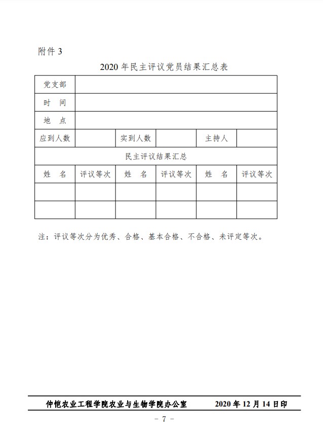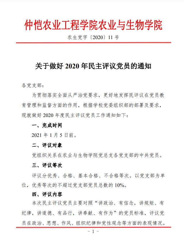 农生党字〔2020〕11号-关于做好2020年民主评议党员的通知