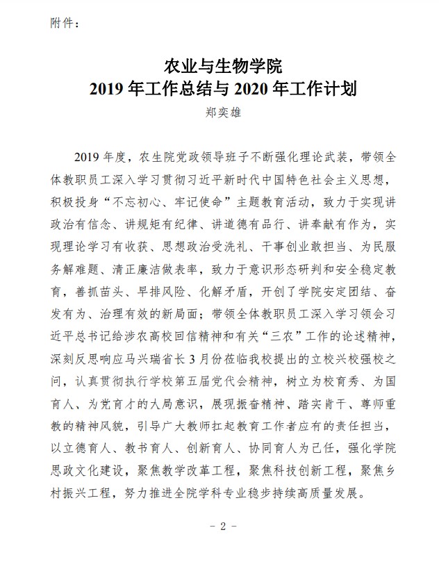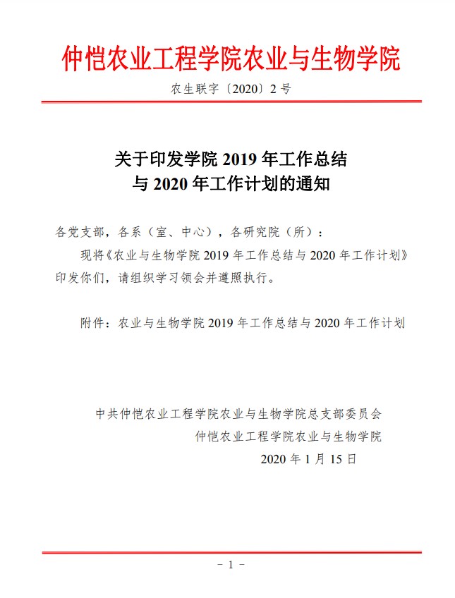 农生联字〔2020〕2号-关于印发公司2019年度工作总结的通知