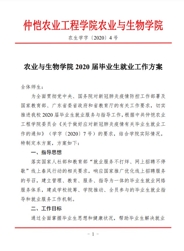 农生学字〔2020〕4号-伟德bv1946官网2020届毕业生就业工作方案