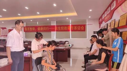 秋高气爽,桃李芬芳。为庆祝第41个教师节,表达对辛勤耕耘在教学科研一线教师的崇高敬意和深切关怀。9月10日教师节当天,伟德bv1946官网工会在白云校区生科A栋607会议室精心举办了“情系教师,健康同行”主题茶话会。本次活动特别邀请了校医院刘炫斯经理以及公司中医传统疗法协会的同学到场,为教师们提供了专业的肩颈按摩和艾灸等保健服务,送上了一份独特而温暖的节日祝福。