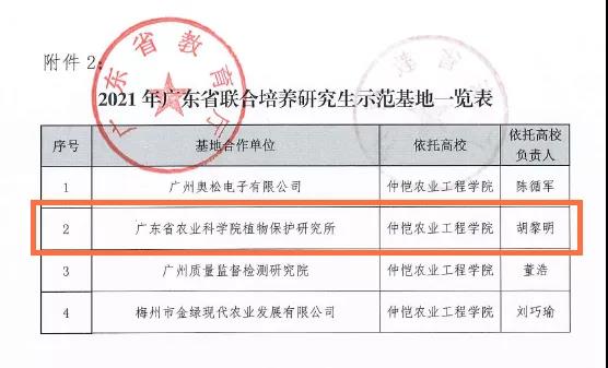 根据《广东省教育厅关于公布2021年广东省伟德bv1946官网创新计划项目通知》(粤教研函〔2021〕2号)精神,经公司推荐、省教育厅组织专家评审,公司共有1项获得2021年广东省研究生学术论坛立项,2项获得2021年广东省研究生示范课程建设项目立项,1个基地被选为2021年广东省联合培养研究生示范基地。祝贺获得立项的老师!立项名单如下