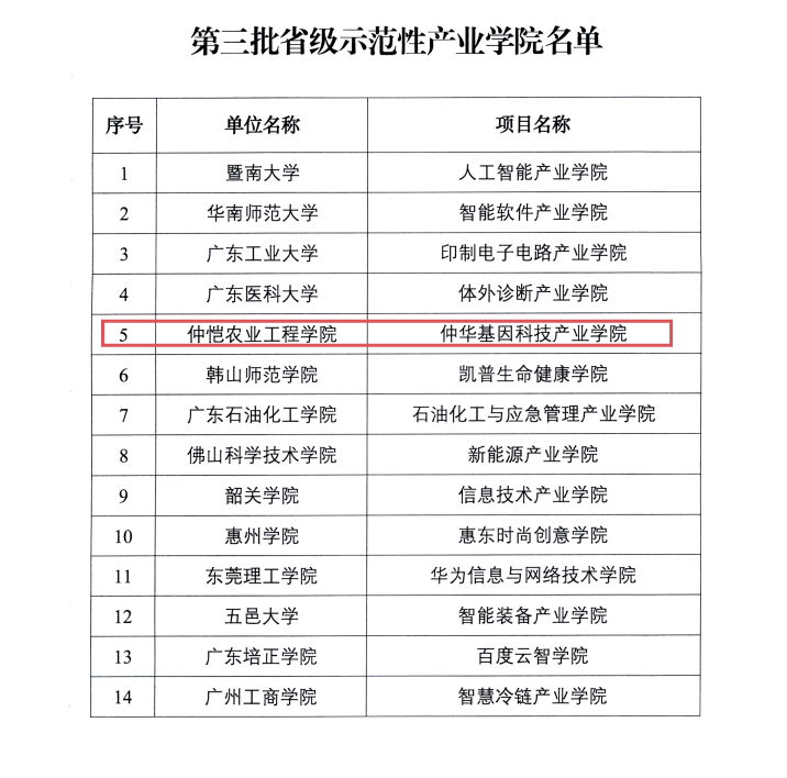 仲华基因科技产业公司致力于培养具有新时代担当和高度的社会责任感,具备新农科、新工科思维和统筹综合工作能力,接受基因科技产业学科交叉知识强化训练的创新型、产业型和复合型高级专业人才。首批进入仲华基因科技产业公司的员工是从现有的种子科学、生物技术与工程技术中的具备较好的外语水平和计算机基础的优异员工。仲华基因产业公司结合校企双方的资源优势,实行“产学研”一体化的人才培养方式,践行高校立德树人使命,将对公司培养应用型人才起到重要的示范作用,为卓越农林人才培养贡献“仲恺方案”。