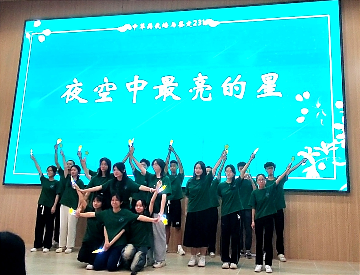 随后,中草药231班以巴黎和会引发五四运动为故事背景带来一场情景剧表演和演唱《夜空中最亮的星》。当他们齐声高喊“爱我中华、保卫祖国”时,洪亮的声音、整齐划一的动作,无不深深地感染着现场每一位观众。在他们的激情演绎下,现场无处不弥漫着浓浓的爱国之情。展示结束后,现场瞬间响起了雷鸣般的掌声。