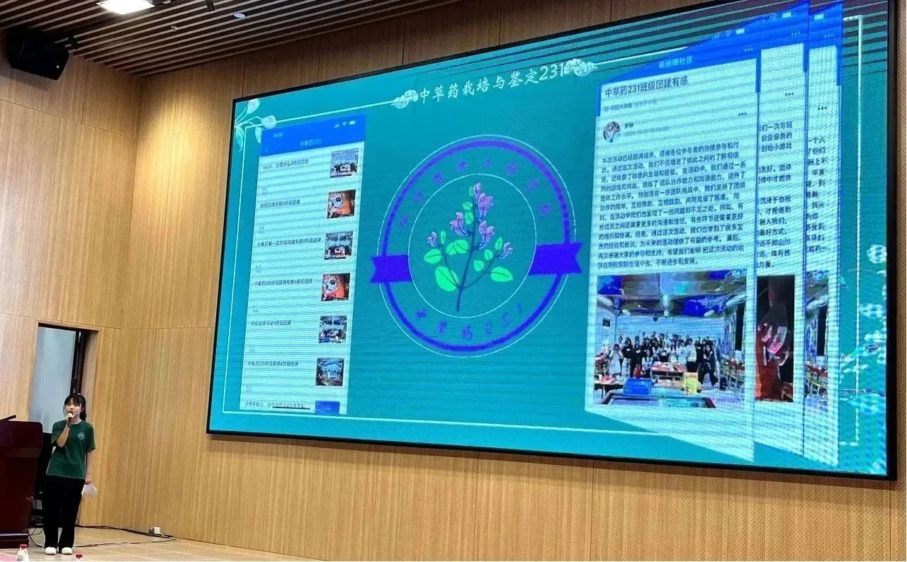 公司中草药231班作为第一个上台展示的班级,充分展现了朝气活力、青春自信的风采。在PPT演讲中,梁美焕同学围绕“班级简介”、“班徽与班服设计理念”、“易班平台建设”和“班级风采”四部分向在座的评委老师和同学们娓娓道来,充分展示了班级团结协作、友爱和谐的良好氛围。