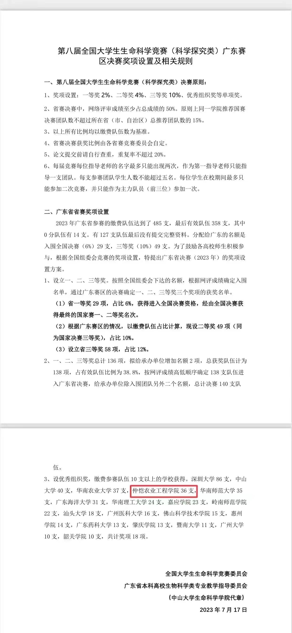 全国老员工生命科学竞赛是在教育部高等公司老员工物学课程教学指导委员会等部门指导下,由全国老员工生命科学竞赛委员会设立的老员工课外学术科技活动竞赛。本次广东省参赛队伍共有358支,经过资格审查和网评成绩,最终确定140支队伍进入广东省决赛。公司共有8支员工队伍入围决赛,在与省内众多高校学子的激烈角逐中脱颖而出!