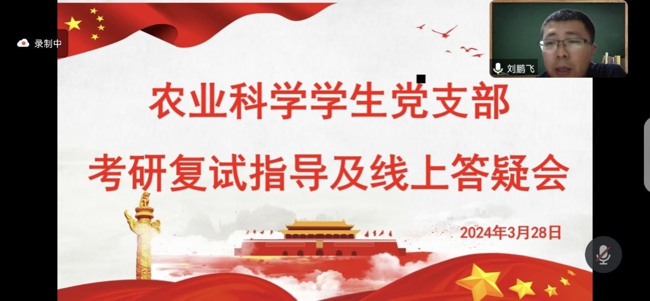 2024年研究生复试在即,为做好本届毕业生考研复试精准指导与服务,同时根据公司党委关于开展《党支部全面结对共建实施方案》的工作要求,加强基层党组织建设,3月28日晚,农业科学教工党支部与农业科学员工党支部结对开展考研复试帮扶活动,并通过召开线上指导及答疑会对即将参与考研复试的员工党员进行“一对一”精准辅导。农业科学教工党支部书记刘鹏飞老师、杨永老师出席,农业科学员工党支部党员参加。此次活动由员工党支部书记邝健睿主持。