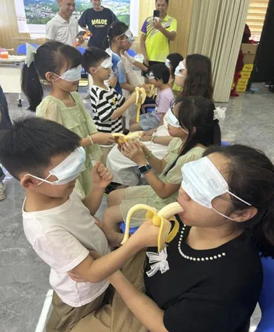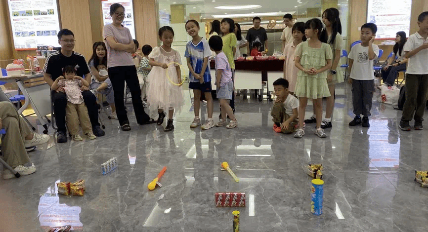 活动当天,教职工家属及孩子们在公司老师的引导下,参与了多个精心设计的(亲子)游戏。第一个游戏是吹球大挑战,各位可爱的小朋友将乒乓球吹到指定杯子,即可获得美味零食。这既锻炼了孩子们的肺活量,又让小朋友们享受了游戏的乐趣。