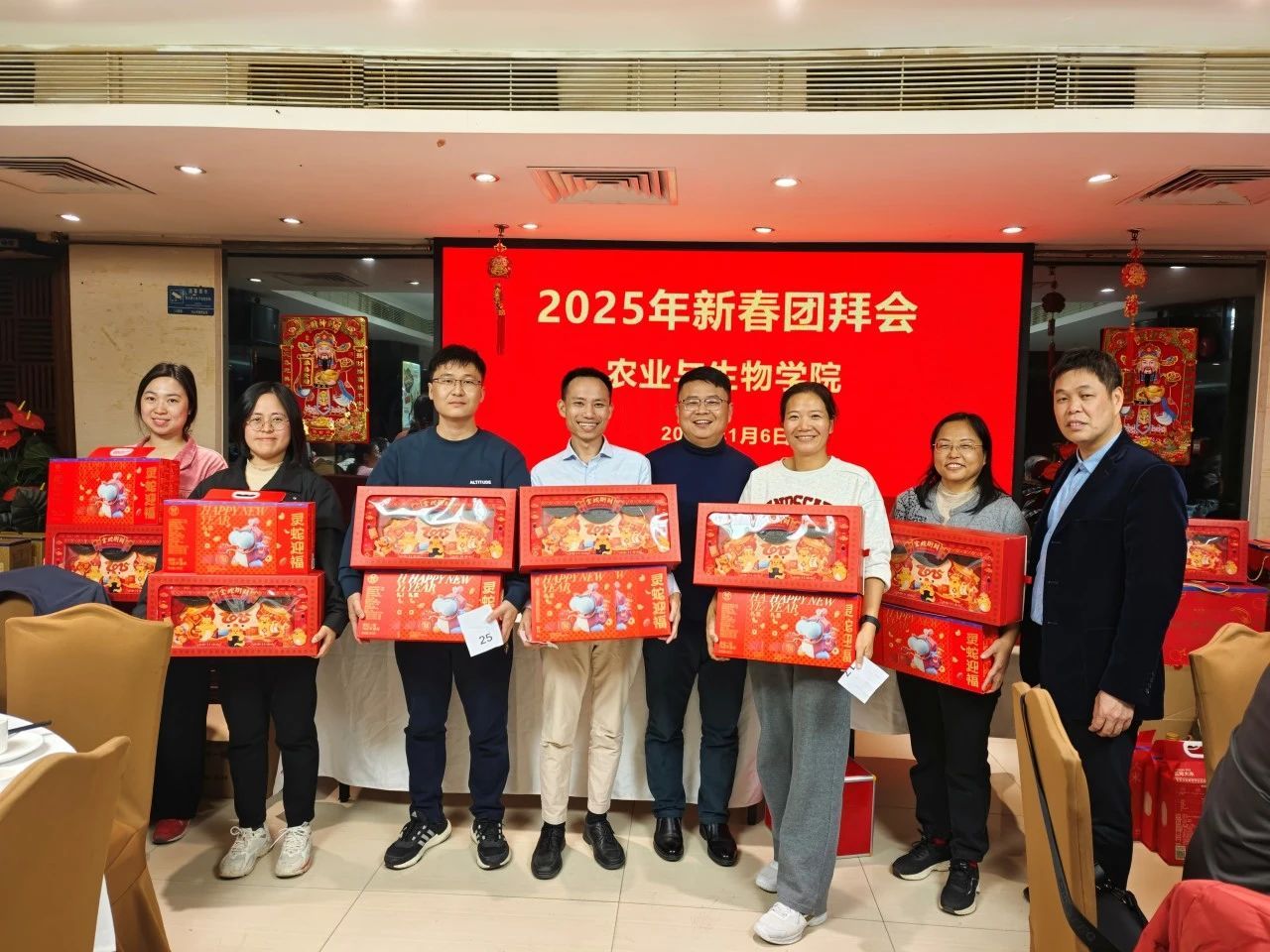 本次团拜会的抽奖环节共设置了四个奖项等级,一等奖1个,二等奖6个,三等奖12个,以及数量众多的四等奖。随着抽奖箱缓缓打开,一个个幸运儿的名字被逐一揭晓,现场不时爆发出惊喜的欢呼声。获奖教职工们脸上洋溢着幸福的笑容,纷纷表示这是他们收到的最特别的新年礼物。晚宴上,大家举杯共祝,畅谈过去一年的收获与未来一年的展望,整个会场洋溢着和谐、欢乐的气氛。