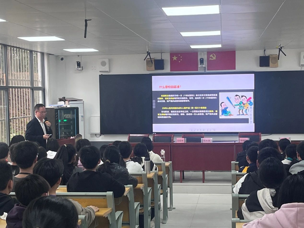讲座中,林律师结合自身丰富的法律实务经验,用通俗易懂的语言、生动鲜活的案例,深入浅出地向同学们讲解了校园霸凌的定义、表现形式、危害以及应对措施。林律师强调,校园霸凌不仅会对受害者造成身体和心理上的伤害,也会对施暴者自身成长带来负面影响,呼吁同学们要勇敢地对校园霸凌说“不”,不做冷漠的旁观者,更不做残忍的施暴者。