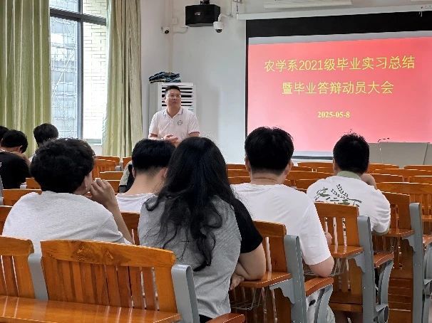 5月8日上午,农学系2021级本科生实习总结暨毕业答辩动员大会在生科楼507举行。会议由农学系主任孙伟主持,校科技部副部长(重大项目办主任)万小荣、科技部副部长陈青春及农学系全体教师、农学21级全体员工参会。