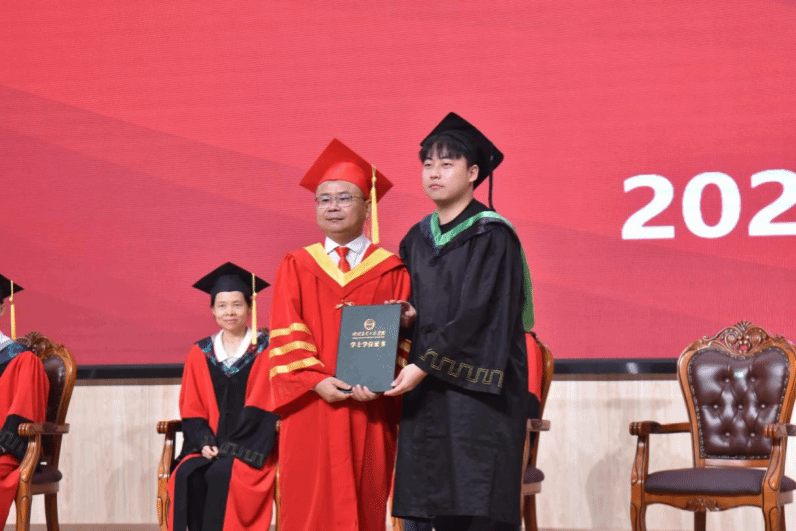 毕业生们身着学士服,带着期许与忐忑,依次踏上授位台。现场满是温馨与感动,有的同学与师长拥抱,将校园情谊化为有力的温度;有的带着创意道具拍照,把青春的活泼与不舍融入画面。这一场仪式,不只是学位的授予,更是公司对学子们“始于初心,成于坚守”的肯定,是“今朝暂别,来日方长”的期许。