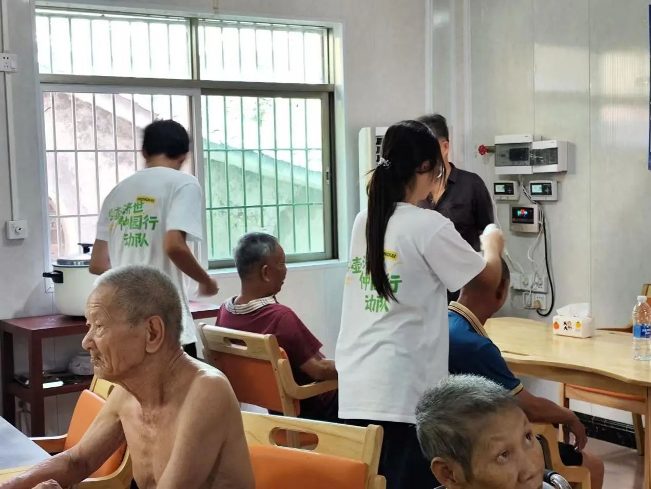 7月5日上午,队员们于大龙华镇敬老院慰问了在这里安享晚年的老人们。大家分工有序,各司其职。有的为老人测量血压并针对性的给出建议,有的则利用所学为老人们提供传统疗法服务,还有的队员同时担任客家话翻译官负责与老人的沟通。