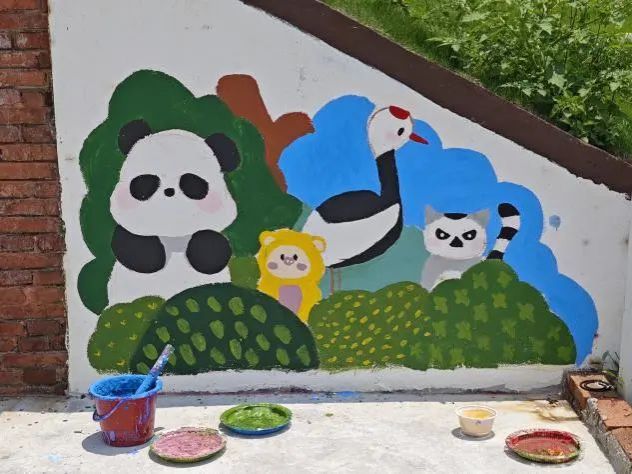 在全体队员的齐心协力、不懈努力下,下午两点钟,绘画工作完美收官。此次共完成7幅地绘、墙绘作品,总面积超过200平方米。原本单调乏味的农场道路和建筑,在队员们的妙笔生花之下,焕然一新,摇身一变成为了一条充满艺术气息的“文化长廊”。这些精美的画作宛如一颗颗明珠,镶嵌在乡村的土地上,不仅极大地提升了农场的文化氛围与视觉美感,更为当地打造了一张独具特色的乡村文旅新名片。