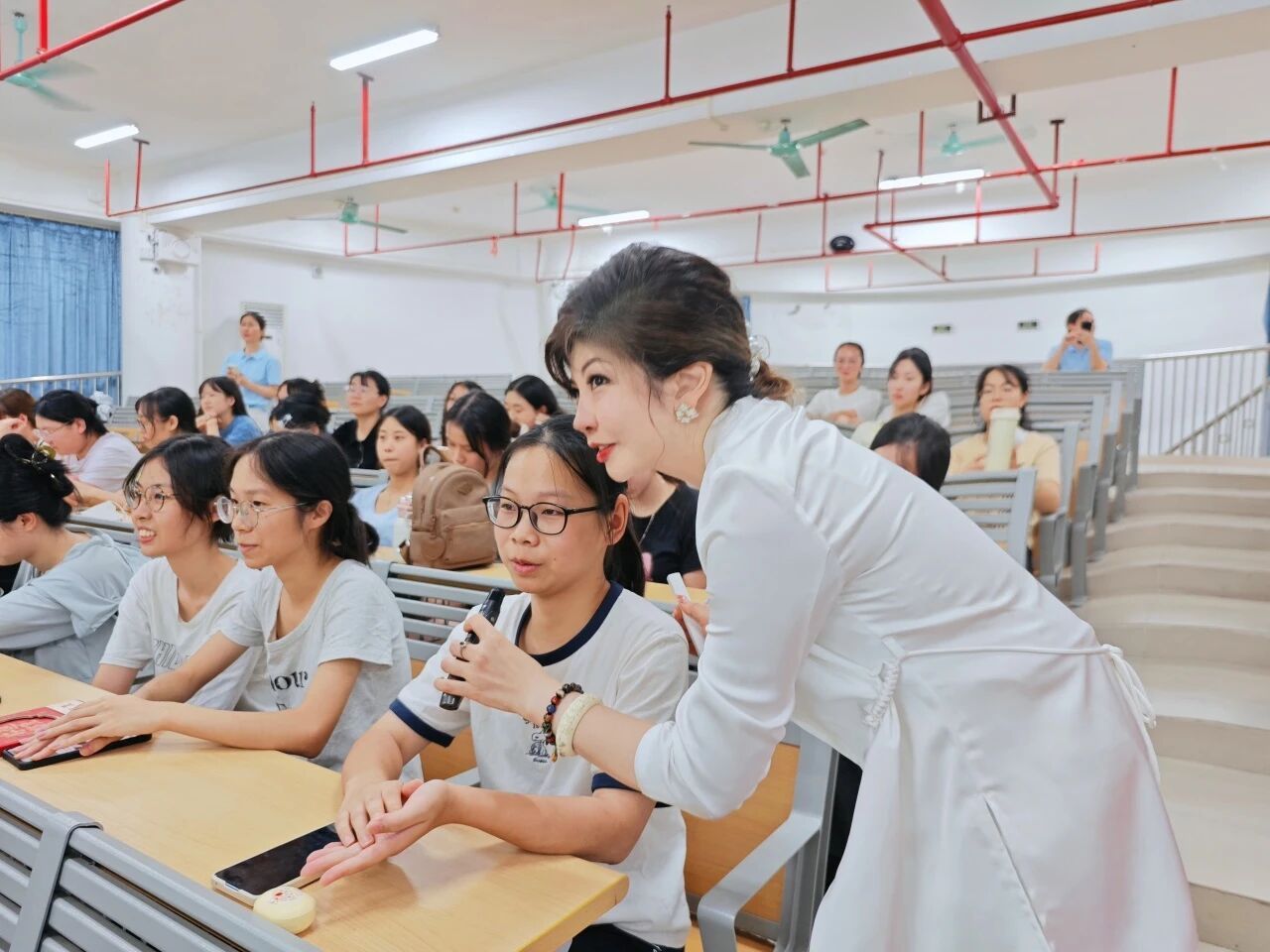 讲座核心环节,吴可洋老师以“专业知识 + 现实案例”,用生动幽默的语言、形象贴切的比喻,凭借丰富的咨询经验和真实的案例,将复杂的心理学知识拆解为多个实用模块,层层递进,为同学们带来一场深入浅出的心理课堂。整场讲座气氛热烈,互动频繁。