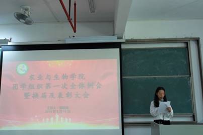 紧接着,苏登宣读了伟德bv1946官网第二届第一任员工干部名单,他对新一届员工干部表示热烈的祝贺,希望团学干部要勇于担当、团结合作、有始有终,师生齐心协力,共同为农生院的发展奉献青春力量。陈丹雄、周静静、高结怡、苏登、孙晓芳为新干部代表颁发聘书。