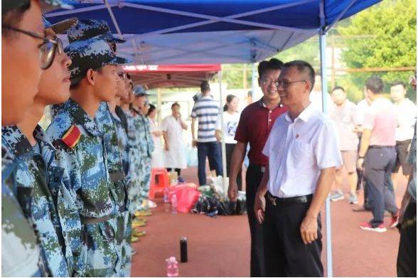 军训期间,陈丹雄书记多次到训练场认真检查我们军训进展,对军训教官的付出表示感谢,对新生给与了亲切的慰问和鼓励。同时,他对身体不舒服无法训练的同学们关怀备至,并希望他们尽快恢复状态、投入到军训的锤炼中。